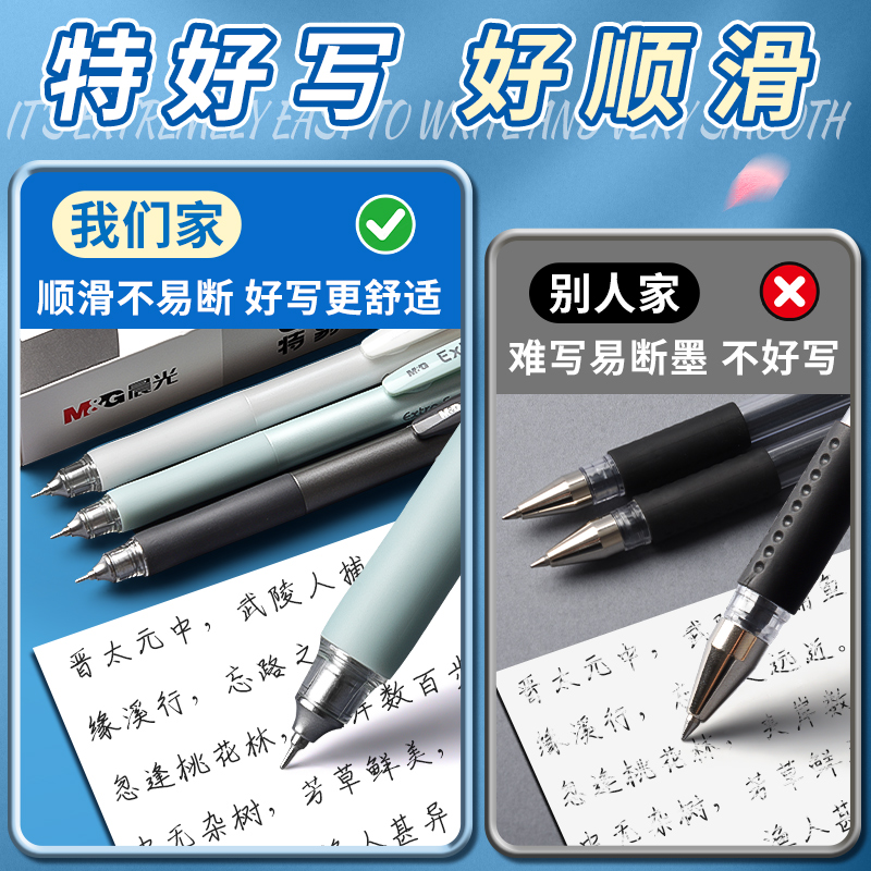 晨光特别好写按动中性笔速干刷题笔针尖锥头笔尖学生初中生文具考试专用碳素顺滑高颜值黑笔顺滑0.5签字笔芯