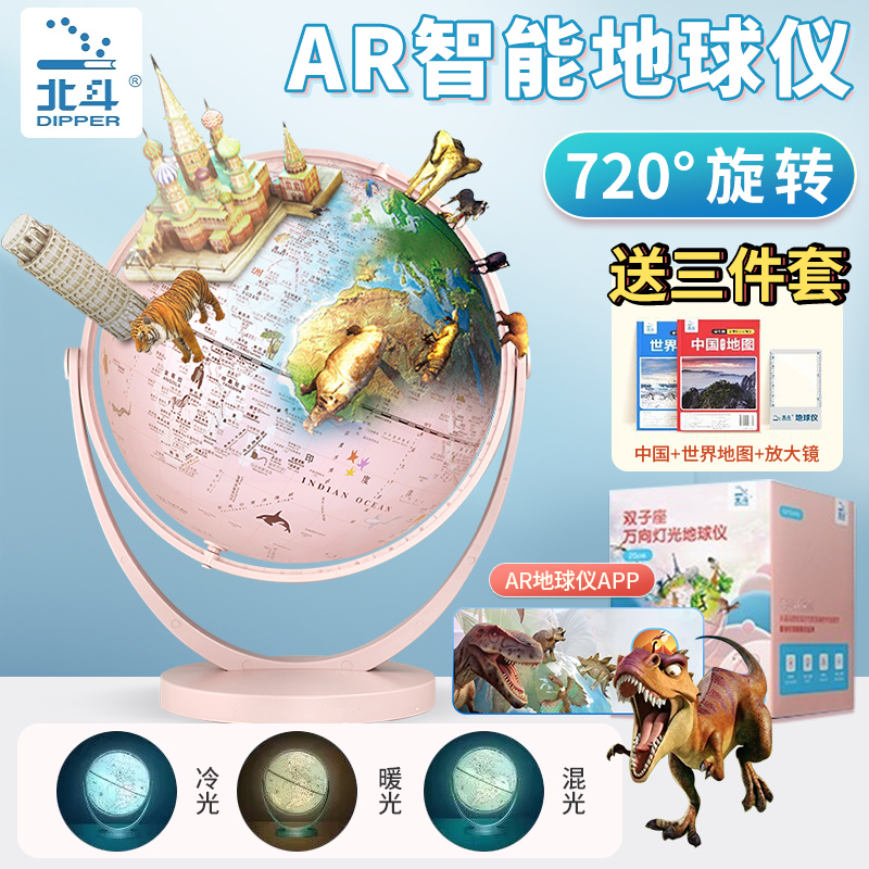 北斗正版双子座万向AR灯光智能地球仪3d立体悬浮发光学生用小学生儿童启蒙男孩生日礼物20cm小号粉色台灯夜灯