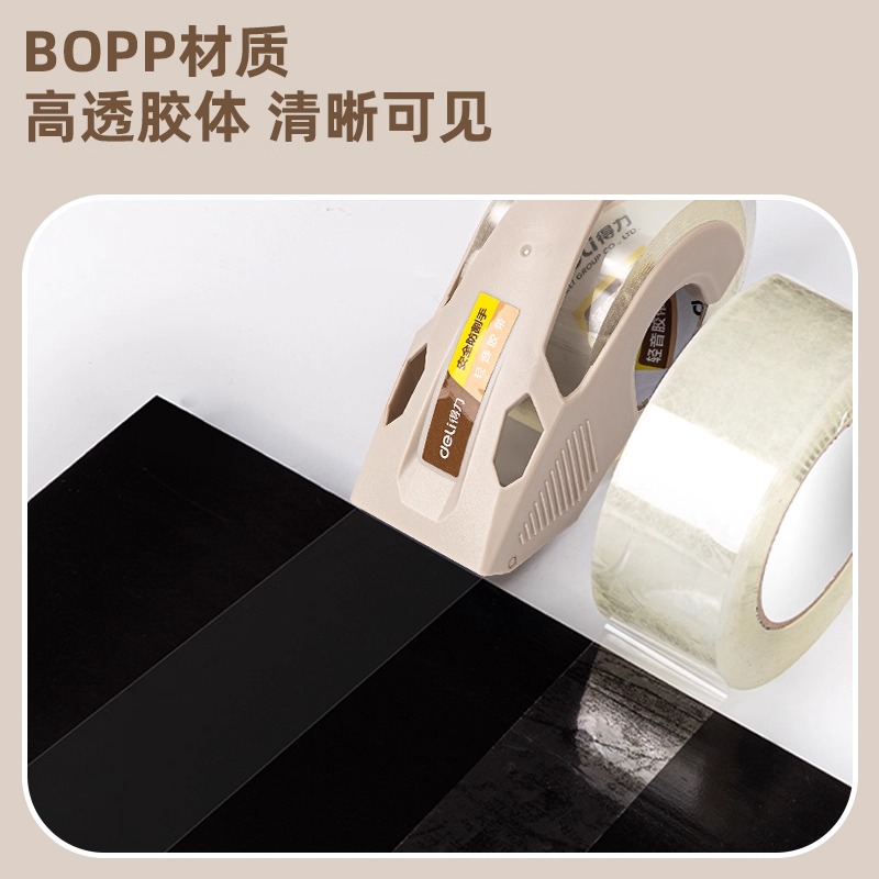 得力透明胶带低噪音封箱胶带轻音快递打包神器大卷包装办公搬家封箱带高透高粘性封口胶纸大号胶布强力封箱器