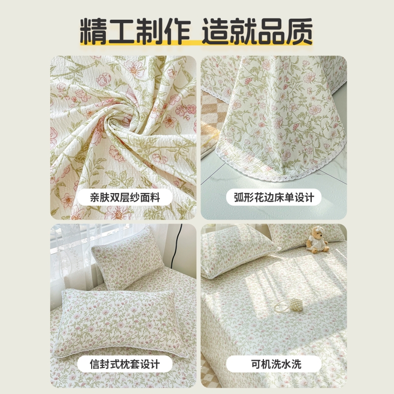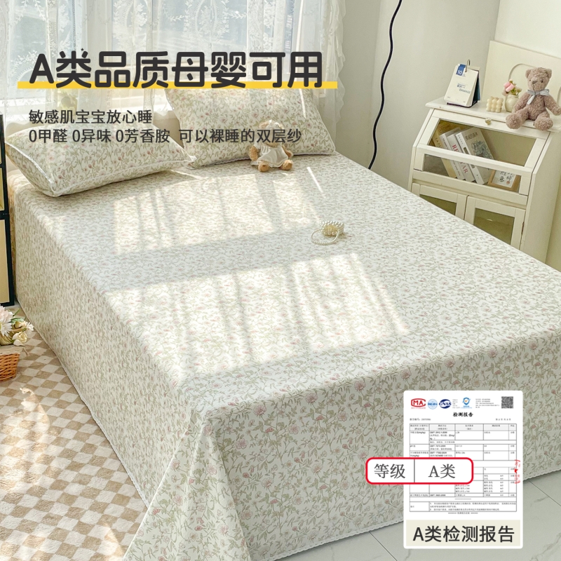 A类双层纱床单ins风单件纯棉全棉2025新款学生宿舍四季通用陈床罩