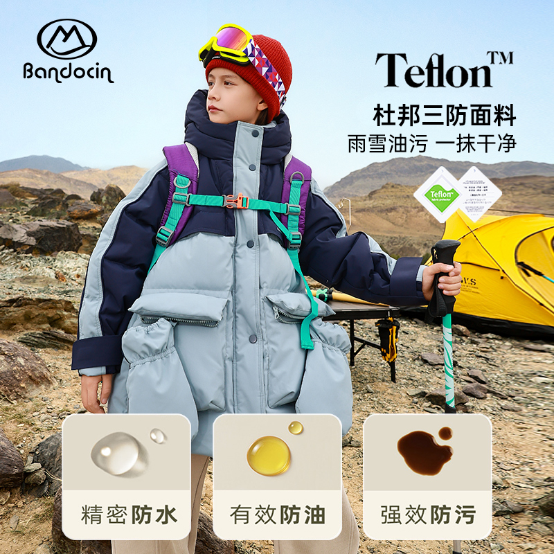 【防水防油污】半度闲男女童羽绒服冬装加厚新款儿童杜邦三防外套