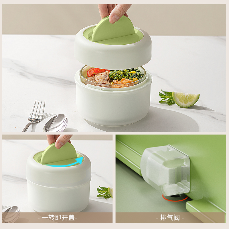 梵施家品保温饭盒大容量小双层上班族轻便携不锈钢圆形提手便当盒