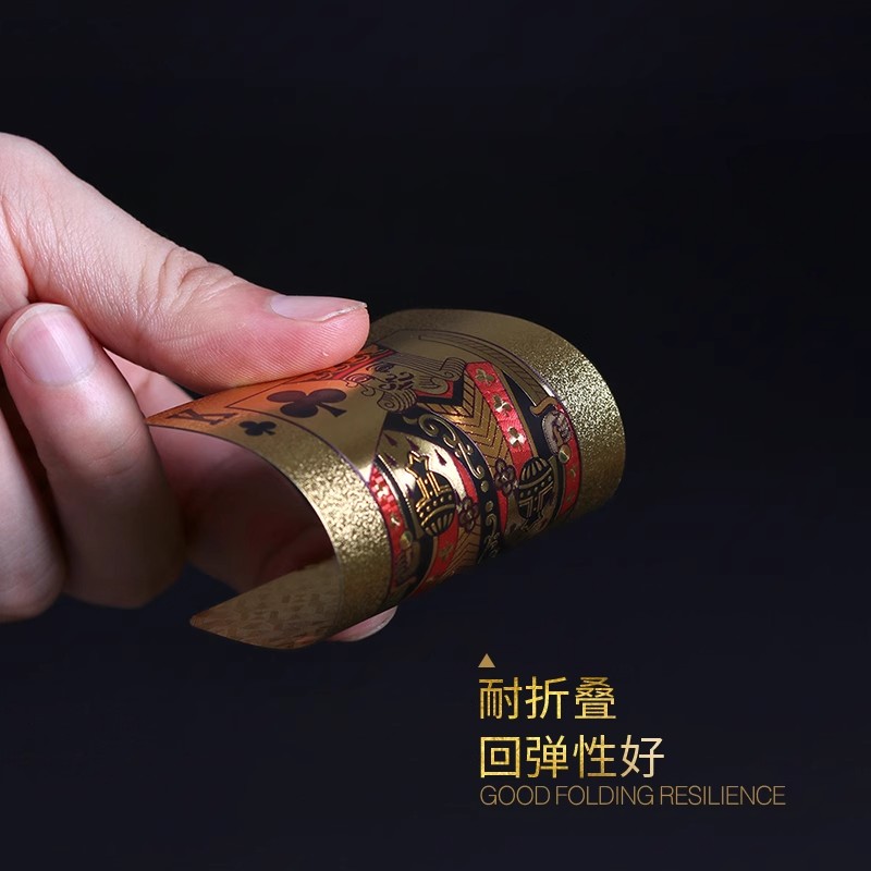 扑克牌PVC塑料防水防折土豪黄金纸牌专用金箔磨砂创意迷你扑克牌