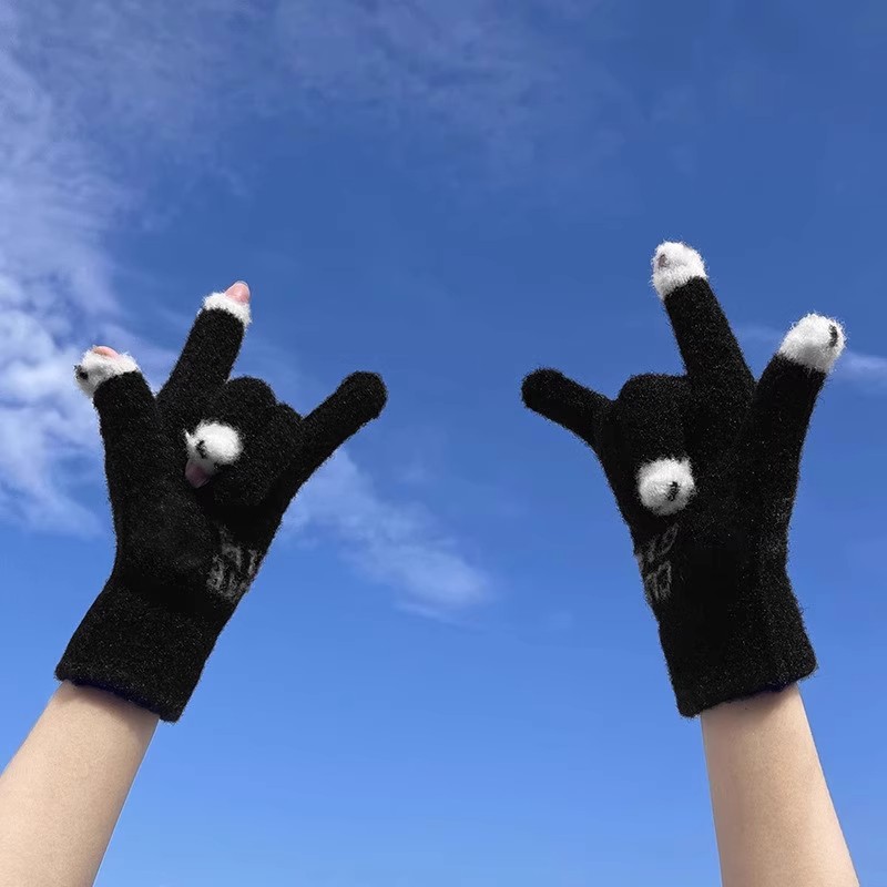 手套女士冬季新款露指加厚保暖大童可爱学生防寒毛线可触屏冬天男
