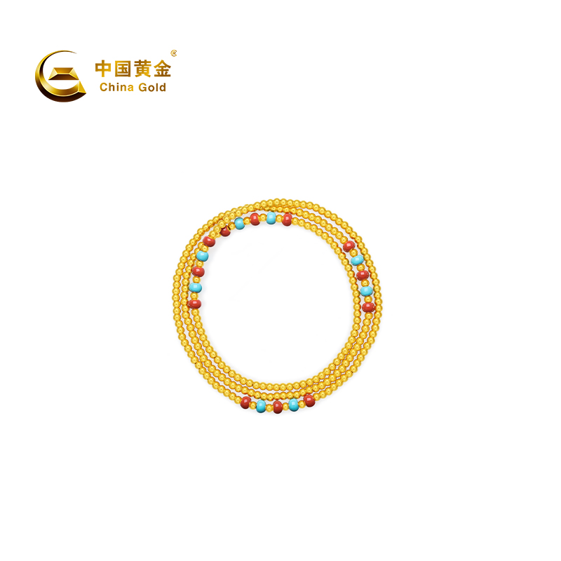 【中国黄金官方店】绯蓝多圈古法手饰时尚新品百搭气质足金首饰