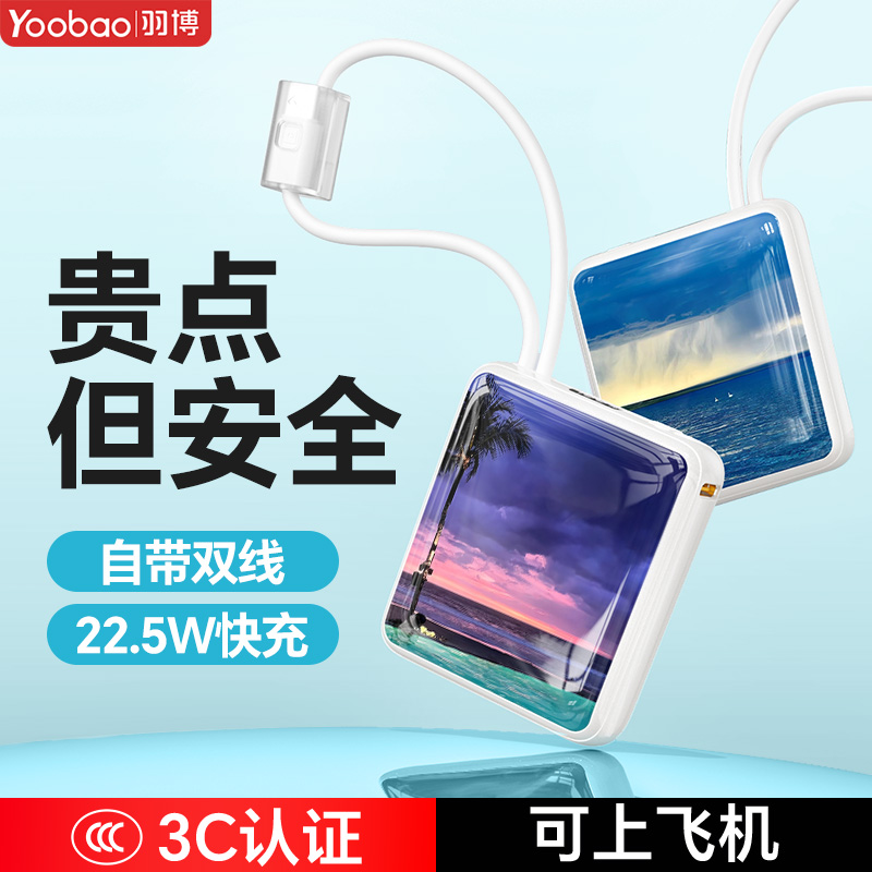 【充电宝3C认证可上飞机】羽博新款彩绘风景迷你自带线10000毫安超级快充22.5W小巧便携移动电源适用华为苹果