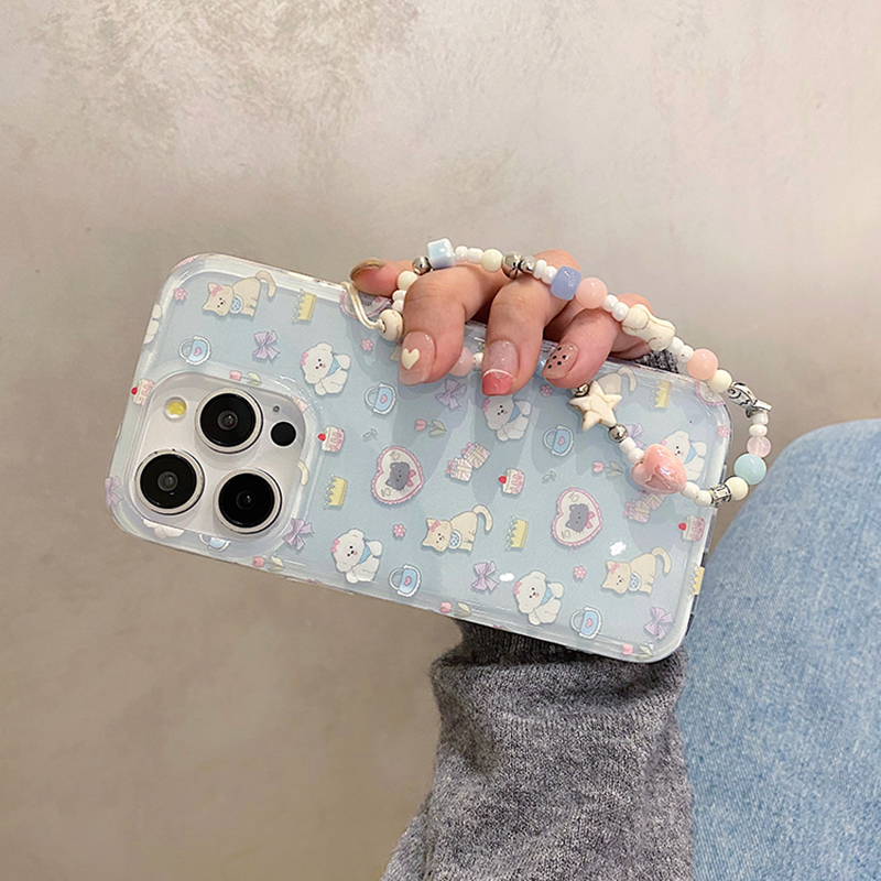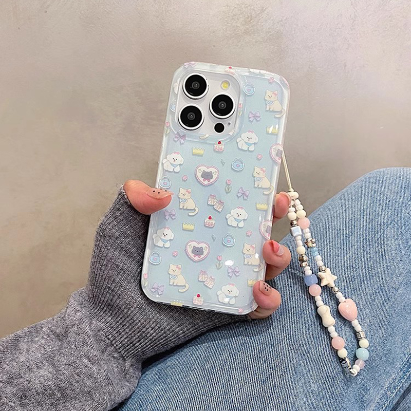 小清新猫咪狗狗插画带链条适用苹果16promax手机壳iphone15pro新款14超好看的13保护套max女款17气质外壳防摔