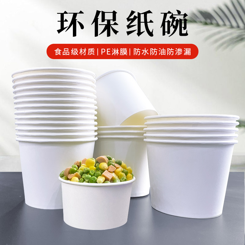 加厚一次性纸碗商用结婚家用臭豆腐外卖打包餐盒饭盒白碗食品级