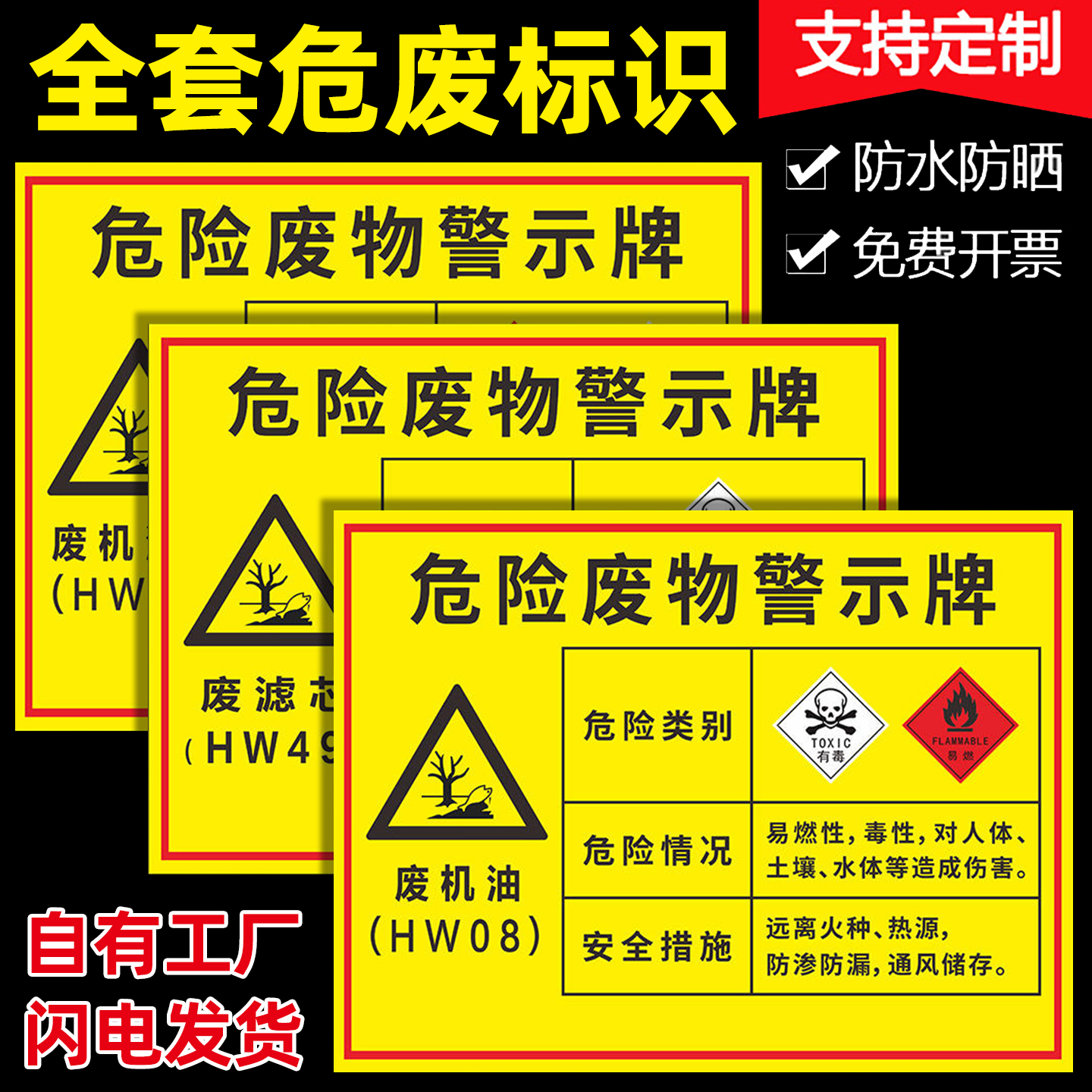 2025新版危险废物标识牌贮存分区标志贴废机油废油漆桶废电瓶废活性炭危险废物警示牌汽修工厂危废间标志贴纸