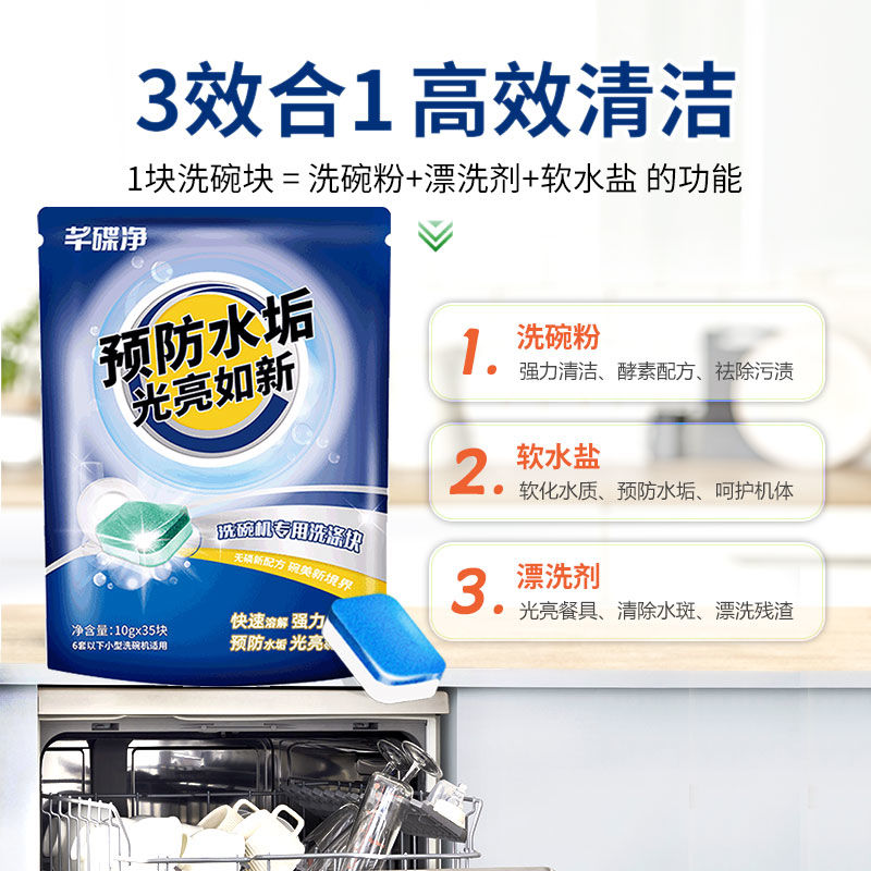 芊碟净洗碗块清洁三合一高效小型家用洗碗机专用洗碗机专用三件套
