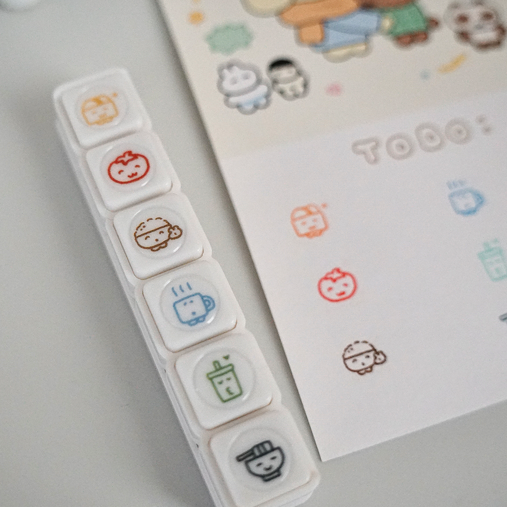 喷嚏士多原创 吃吃六联光敏印章 可爱趣味饮食记录手帐打卡标记章