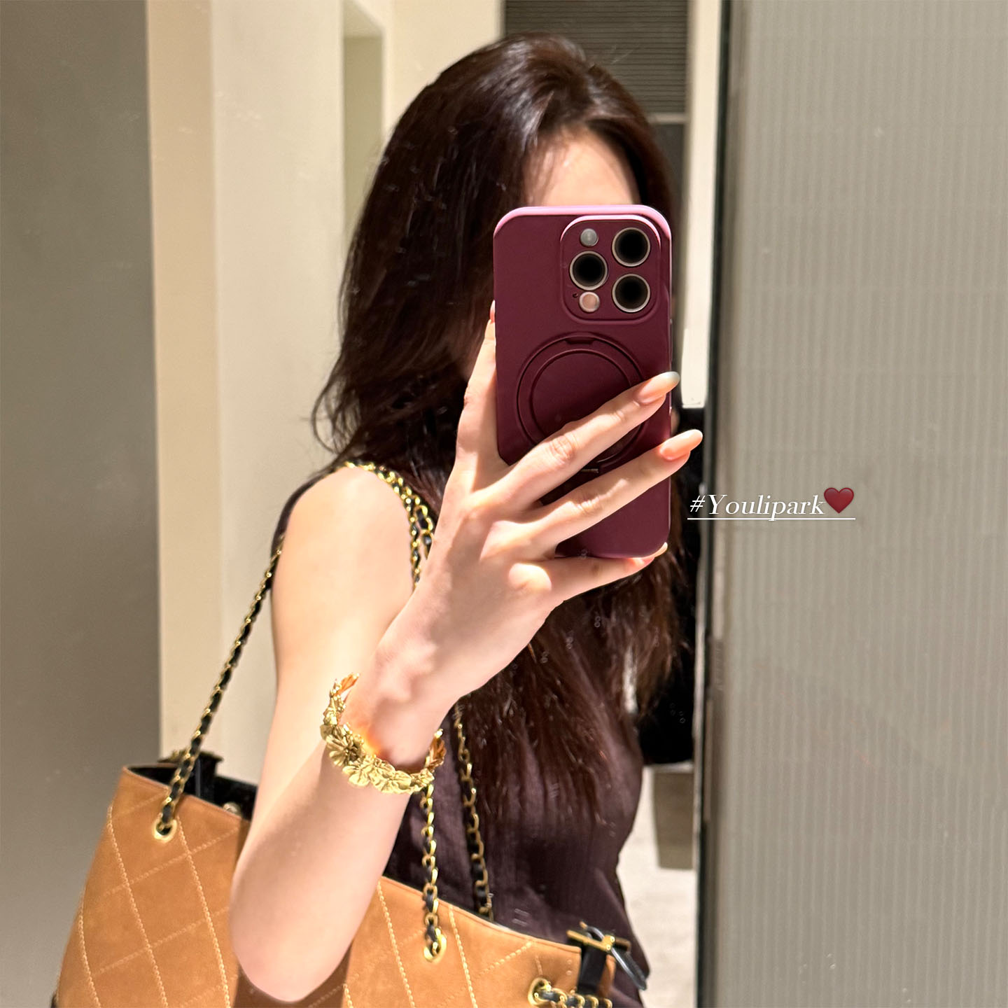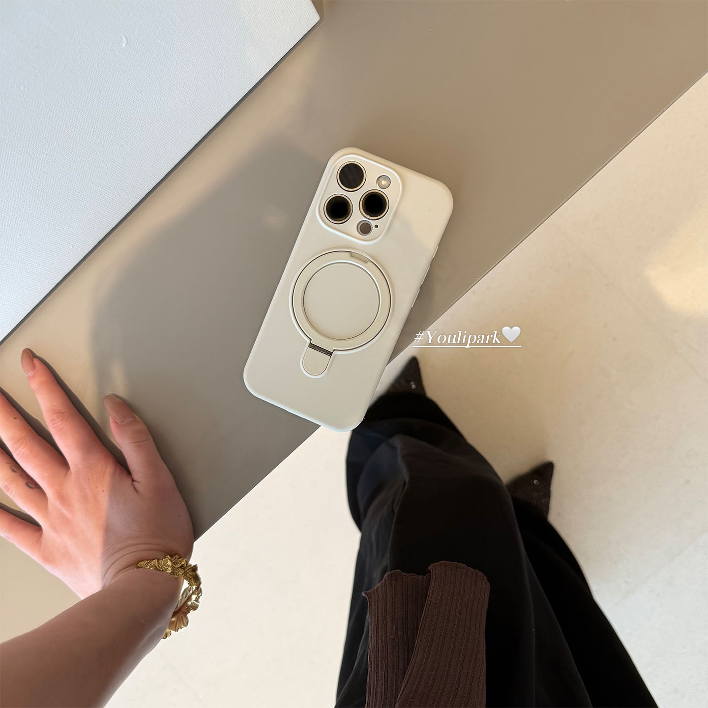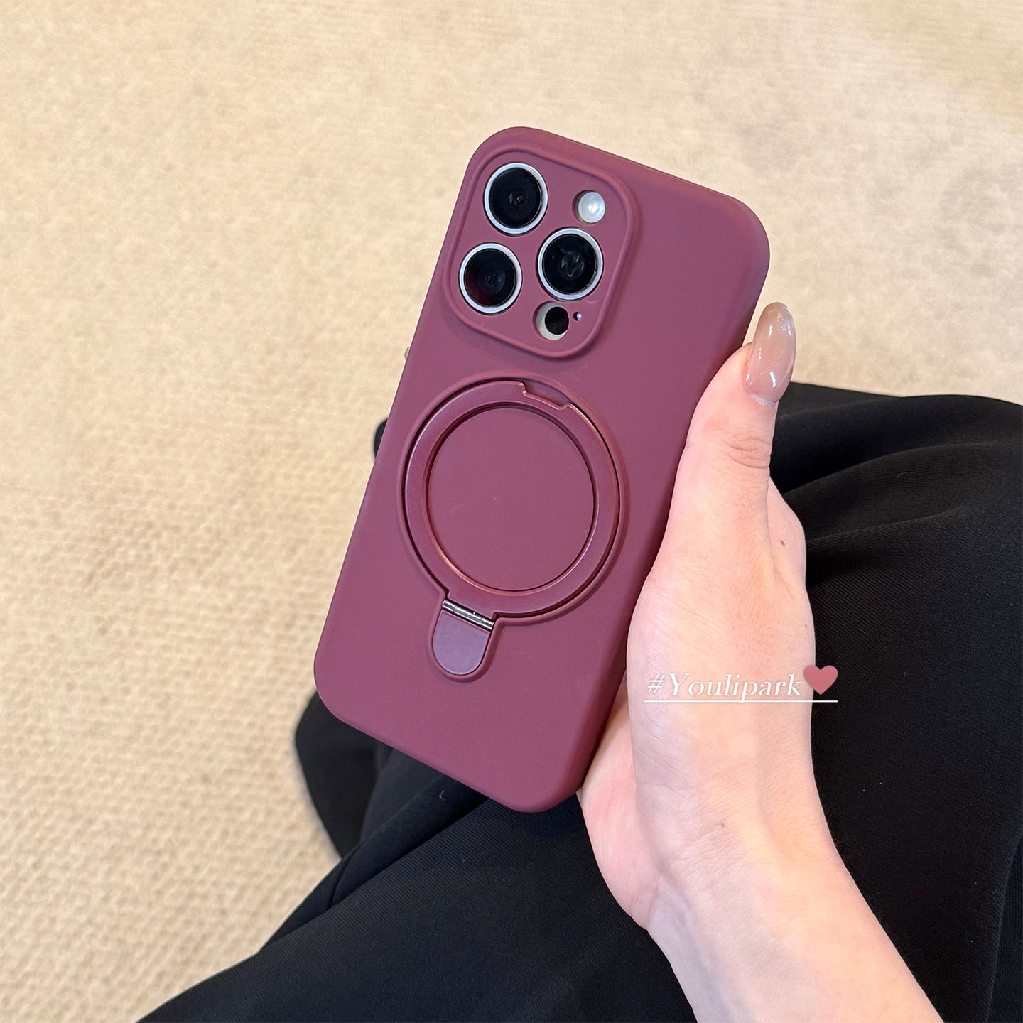 由里公园ins高级感纯色液态硅胶折叠支架15适用17pro苹果17ProMax手机壳iPhone16全包17新款14Promax保护套