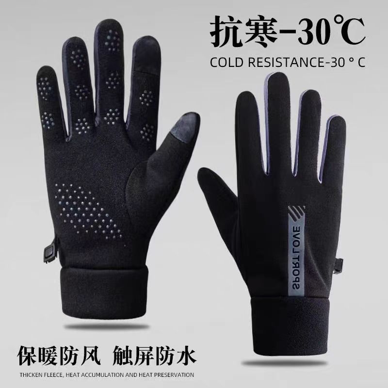 新款冬季保暖手套加绒加厚防寒触屏骑行开车户外运动德绒棉手套
