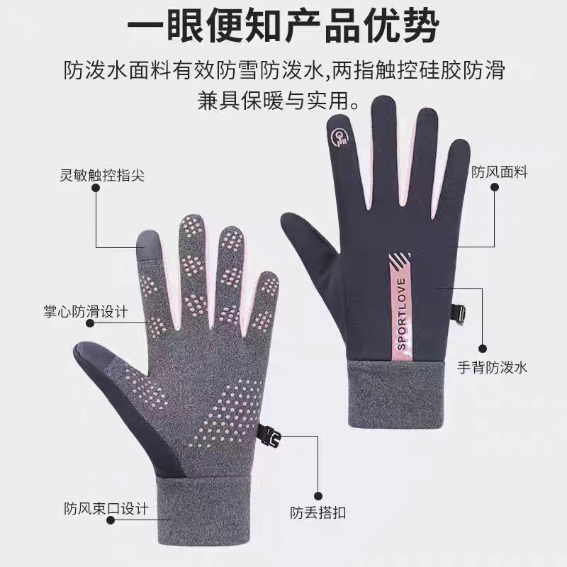 冬季防风防水加绒保暖触屏秋冬季户外电动车手套防滑骑行专用手套