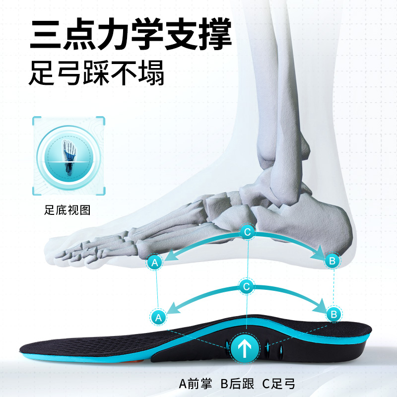 足力健足弓支撑鞋垫女4d久站不累脚踩屎感老人厚减震防痛军训专用