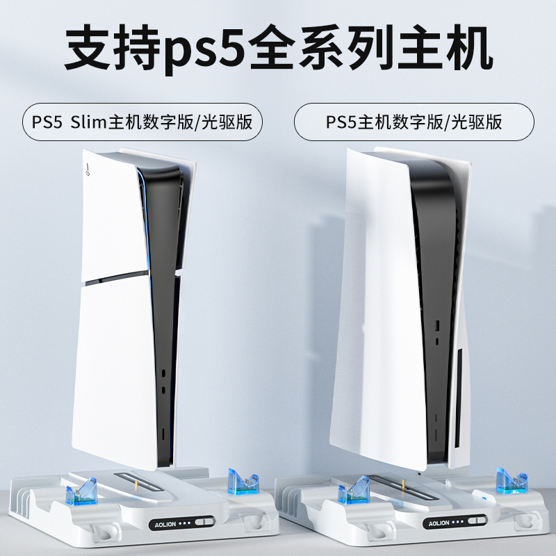 澳加狮 PS5主机散热底座Slim散热器ps5 pro手柄充电底座光驱/数字通用卡带收纳架手柄座充ps5配件