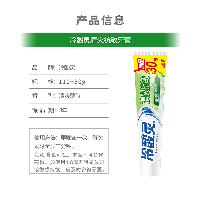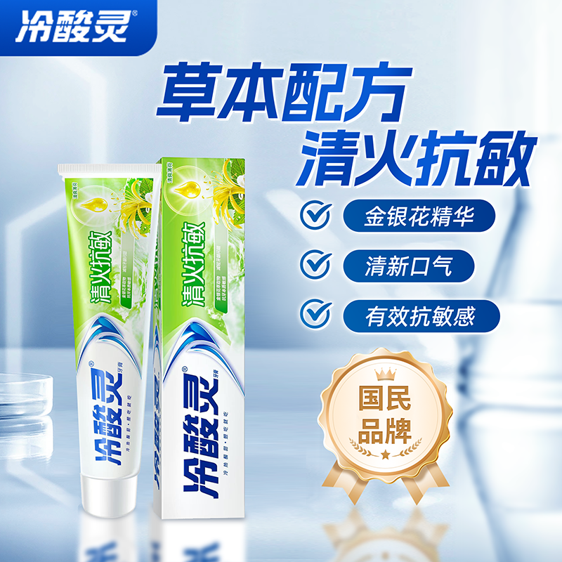 冷酸灵抑牙菌斑抗敏牙膏温和护龈清新口气薄荷口味抑菌清火