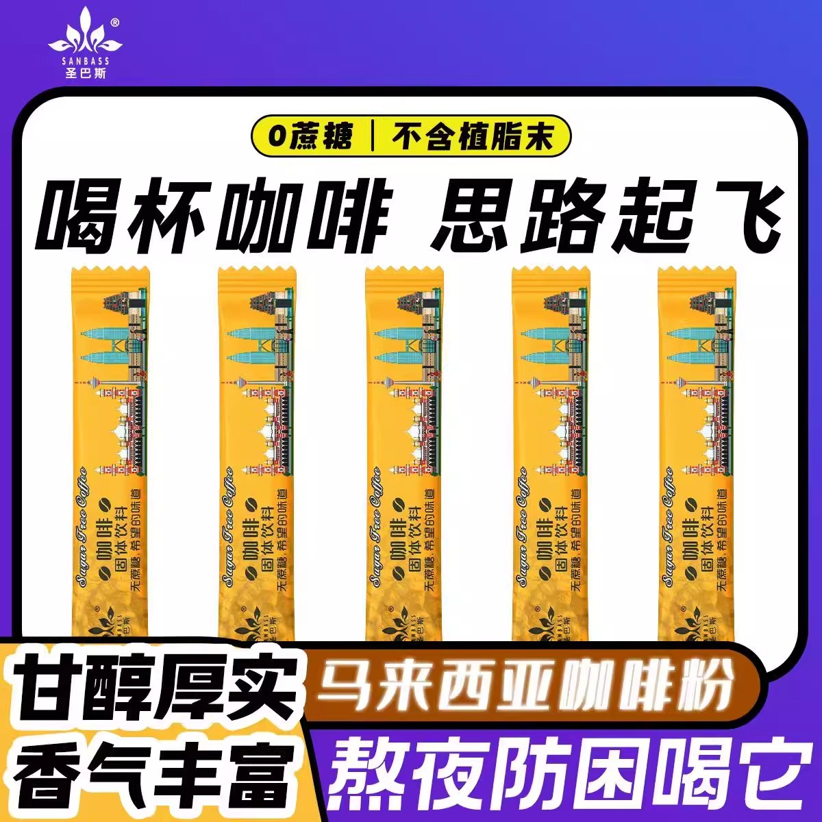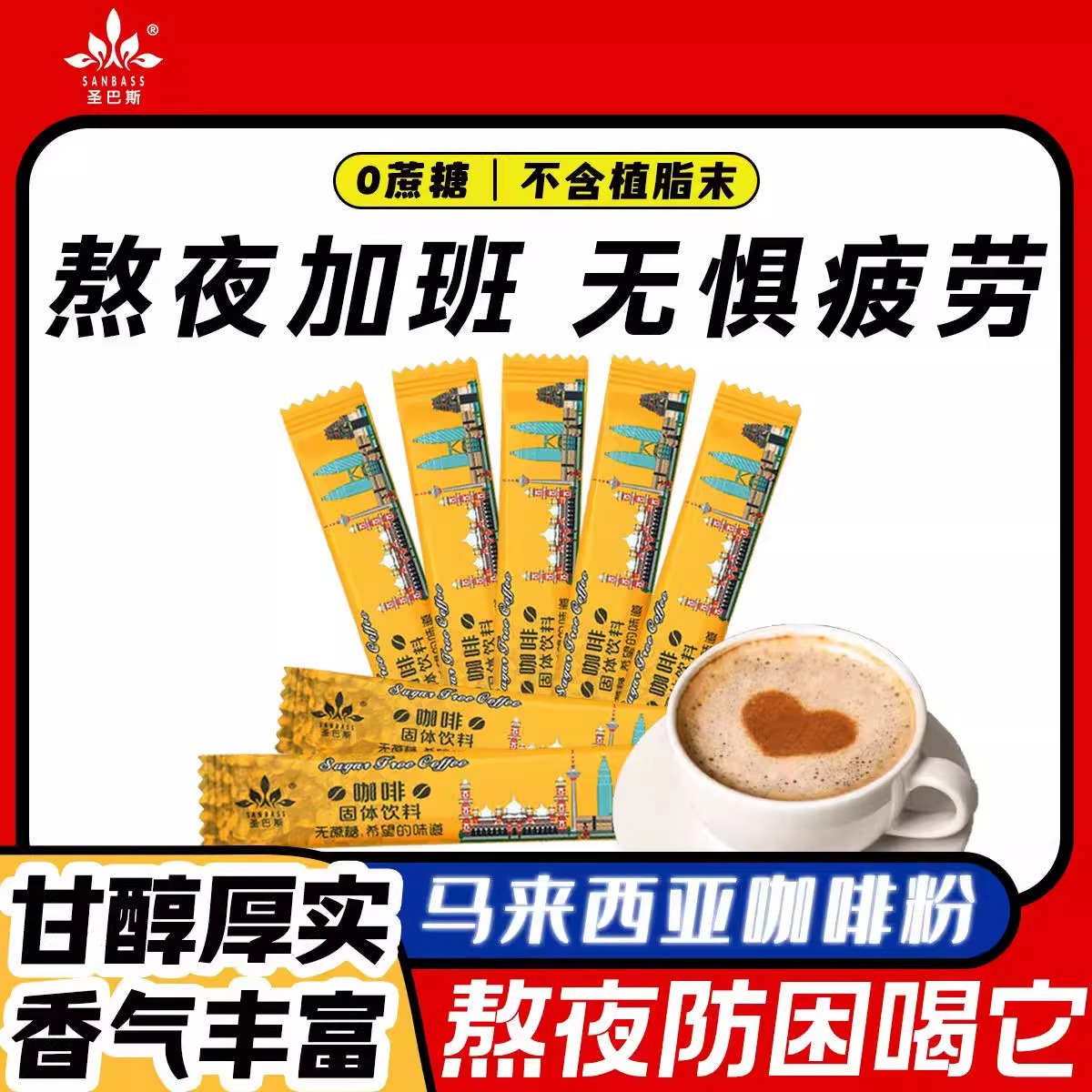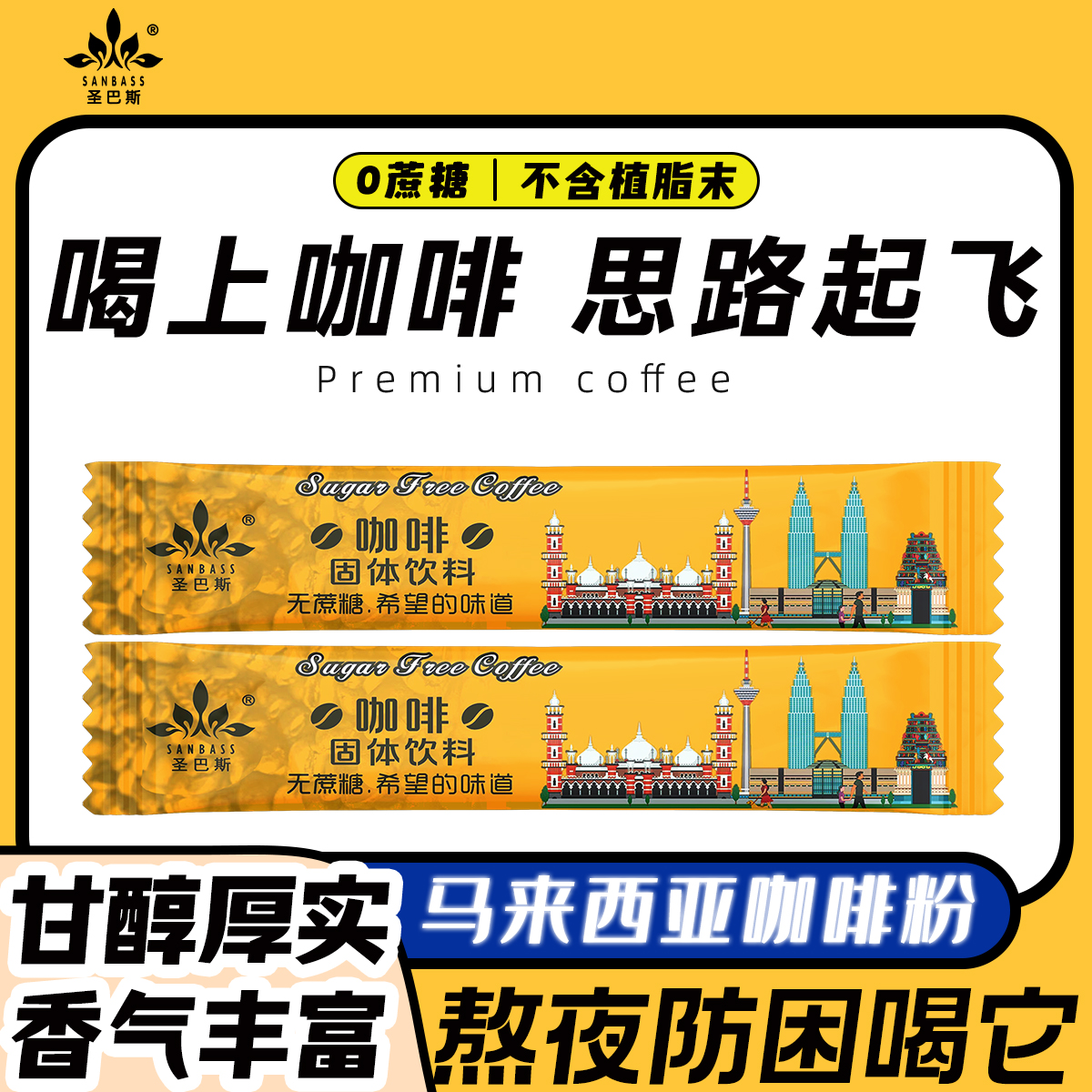 圣巴斯无蔗糖二合一速溶咖啡粉马来西亚0植脂末原味糖尿病人提神