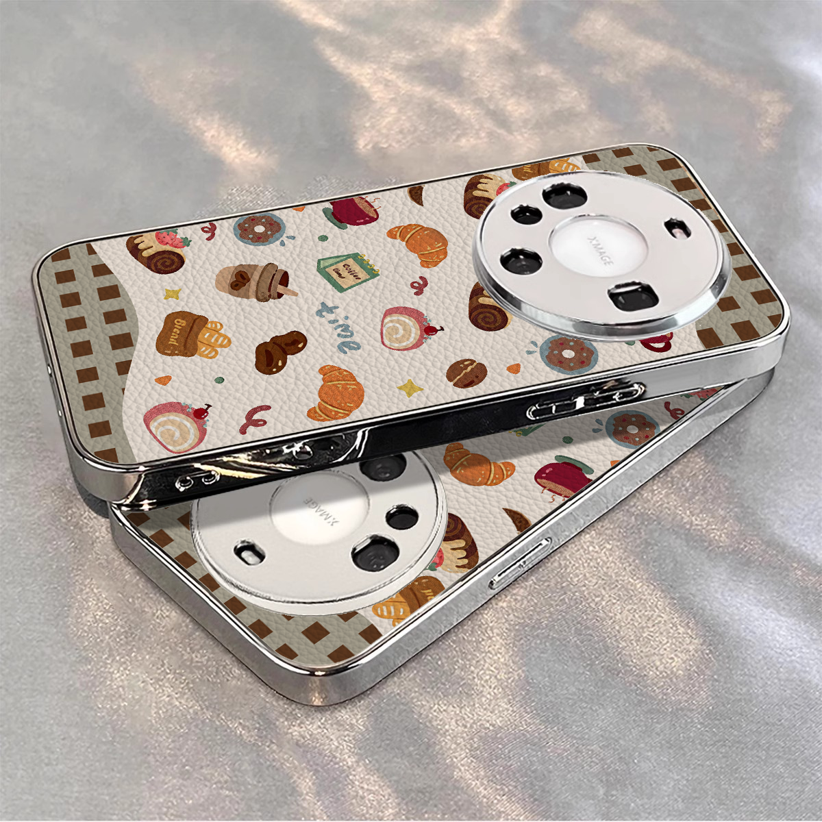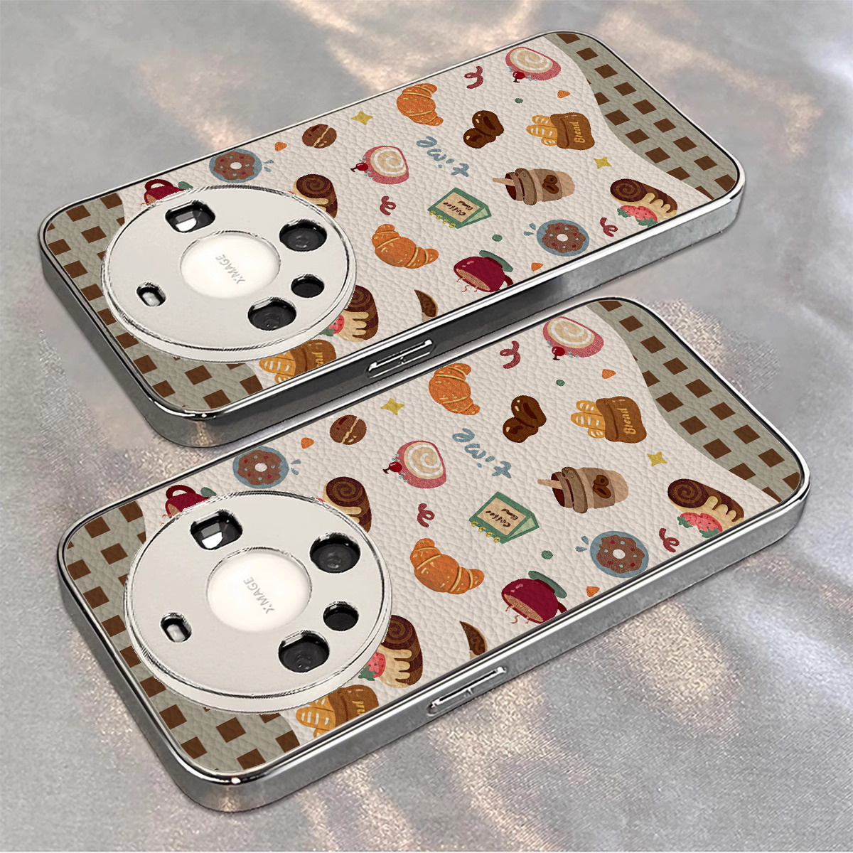 方块食物适用华为mate80pro手机壳70新款mate60电镀小羊皮保护套pura70pro+高级感p60复古50女防摔40皮质30