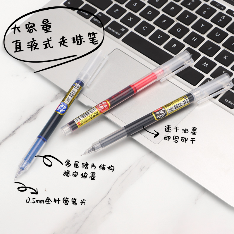 得力直液式走珠笔速干大容量直液笔0.5黑色中性笔学生用速干刷题笔水性笔直液笔圆珠笔商务办公简约风笔杆