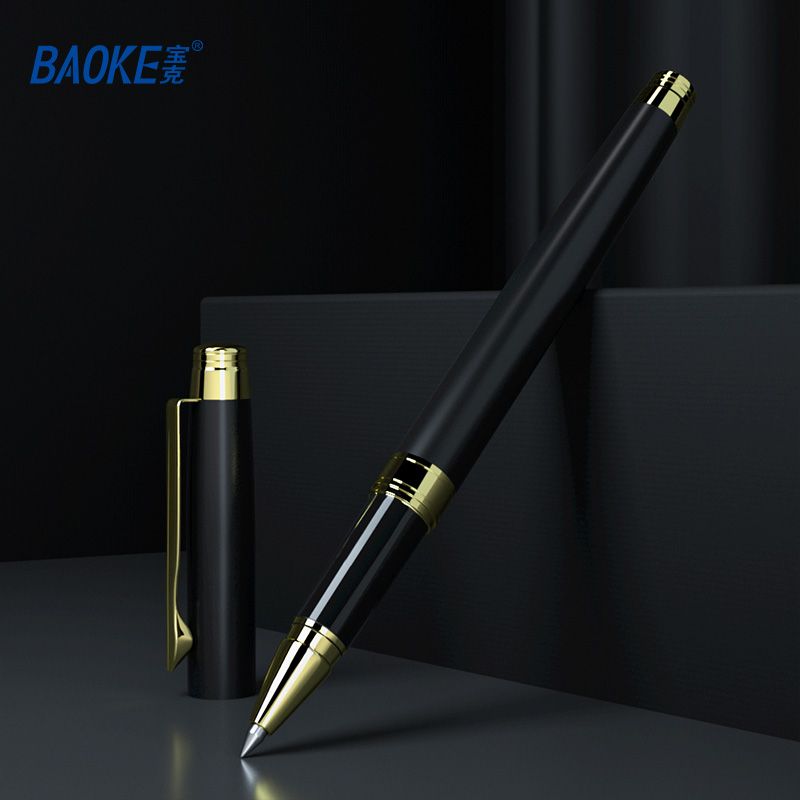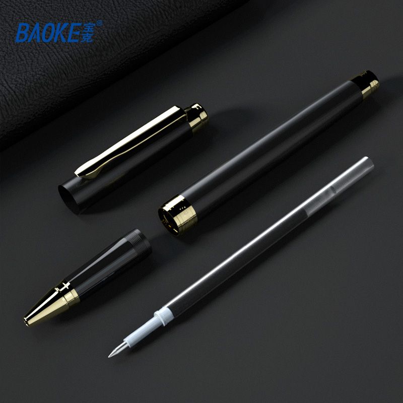 宝克金属商务签字笔0.7mm子弹头磨砂黑色中性笔高档签字笔PC109