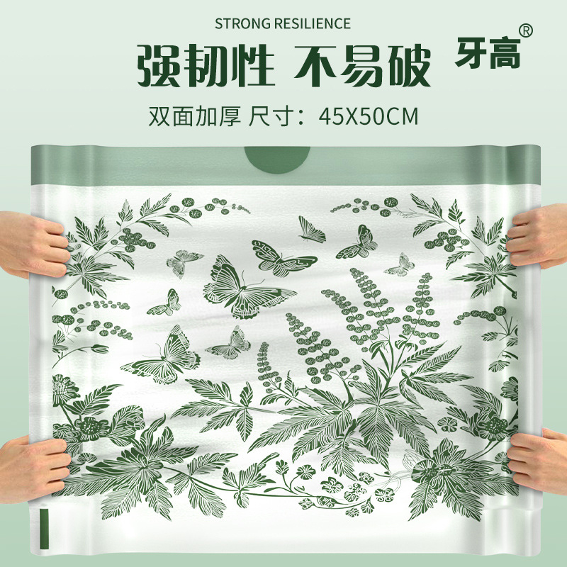 e洁提绳垃圾袋家用手提式加厚加大印花大卷办公室厨房塑料袋100只