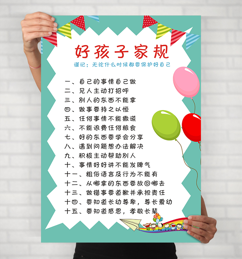 写作业要做到三个三 儿童家庭教育辅导标语家规家训学习知识墙贴 家规十条海报9个好习惯好孩子家规读书好处