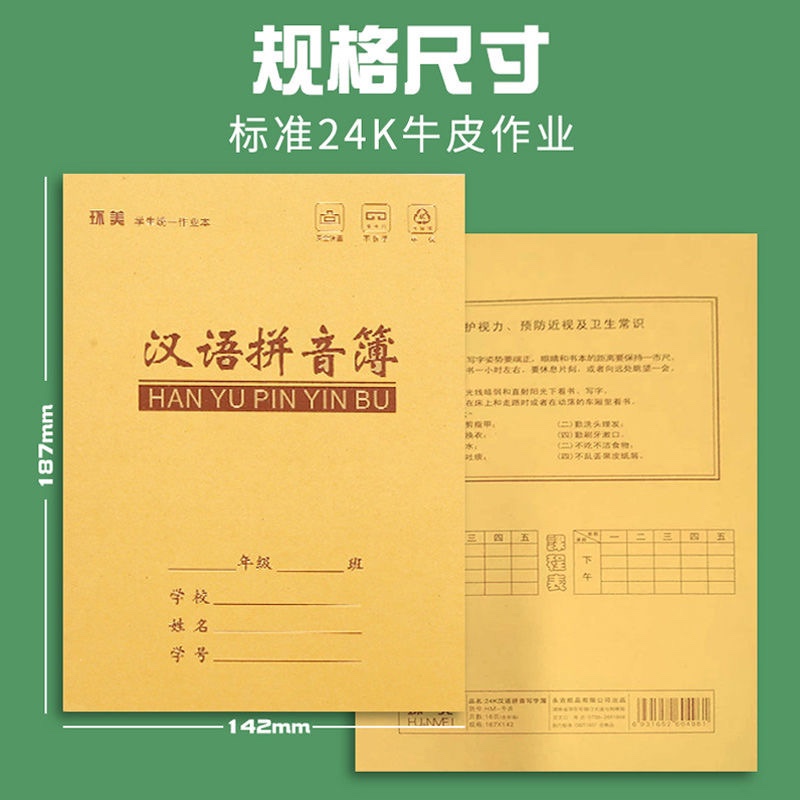 牛皮纸封面24k双行簿小学生1-6年级统一作业本双线本作业练习本