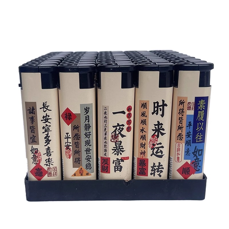 明火整盒50支装防风加厚防爆一次性新款打火机国潮商超便利店批发