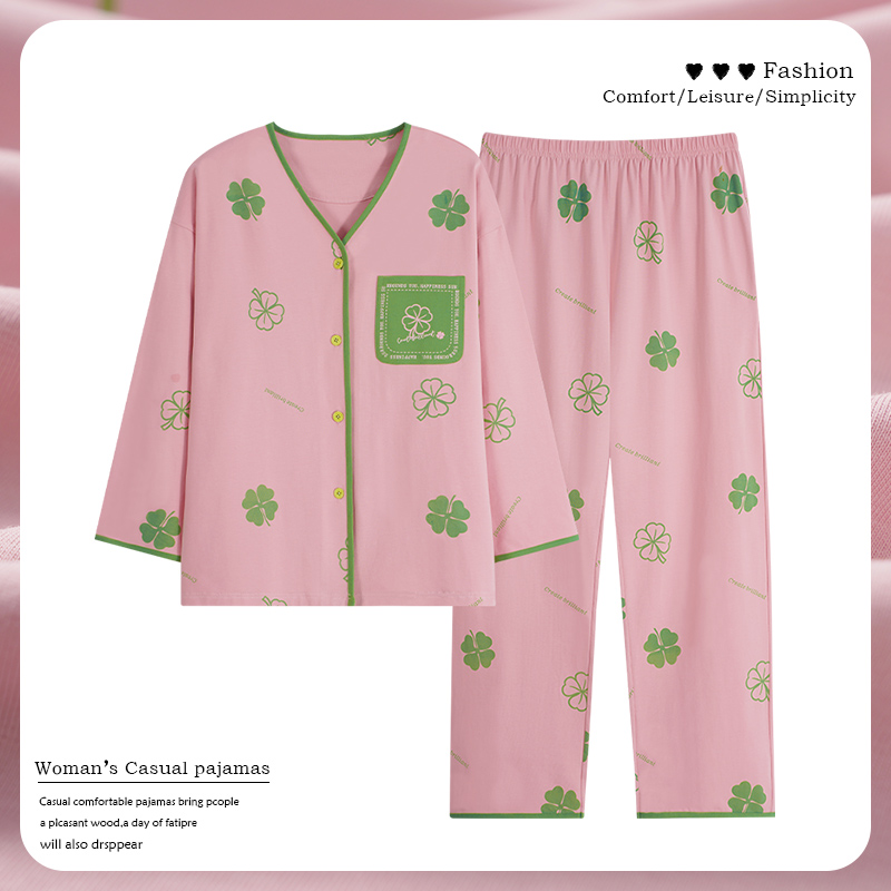 套装睡衣女士春秋2024年新款纯棉和服长袖甜美可外穿家居服加大码