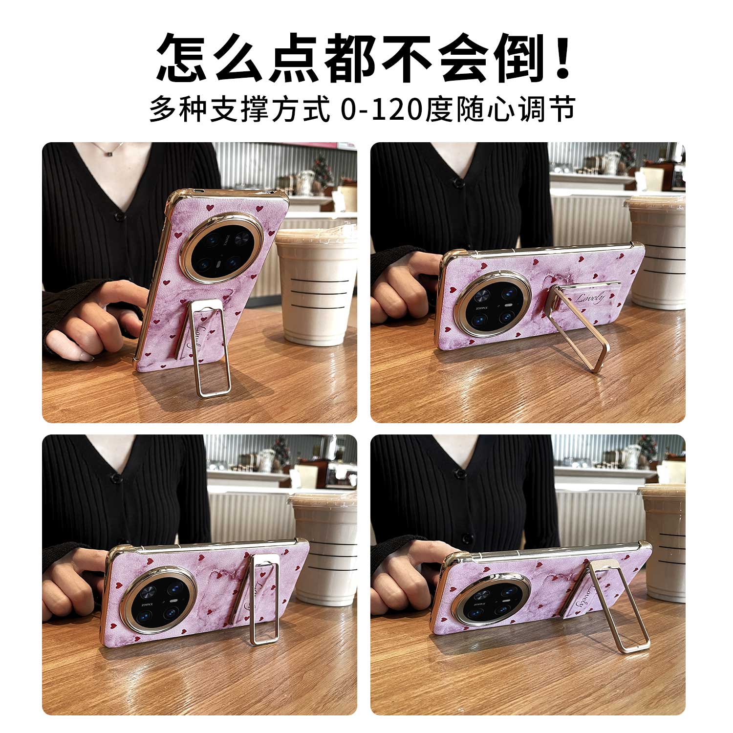 气质爱心适用华为mate70pro手机壳新款旋转腕带支架华mata70高档素皮轻奢超薄无边框全包高级感por+外壳女皮