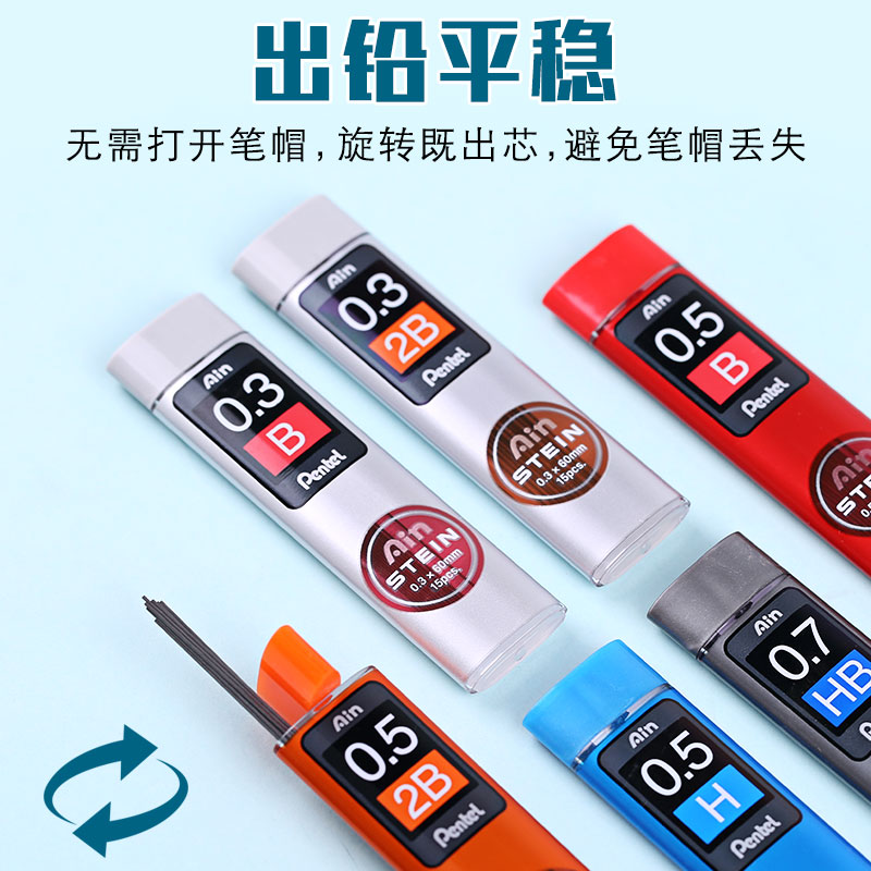 日本pentel原装进口派通自动铅笔芯替换活动笔芯铅芯0.2/0.3/0.5/0.7/0.9mmn强韧防断铅2b/HB/2H/3B/4B/2H/比