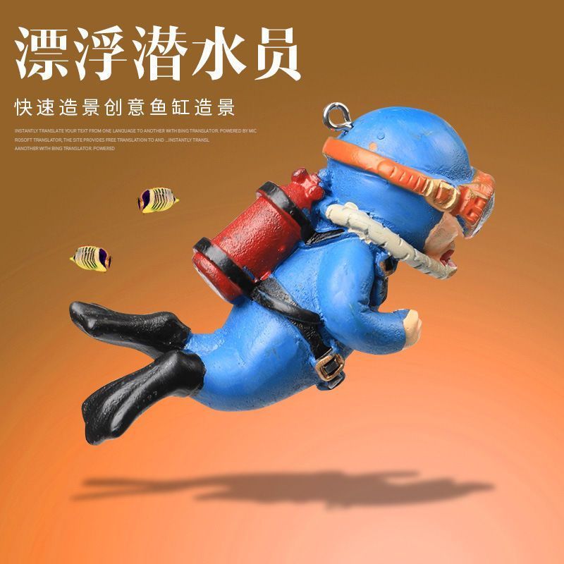 小魔女鱼缸漂浮潜水员蓝胖子摆件造景海底世界水族箱悬浮创意装饰