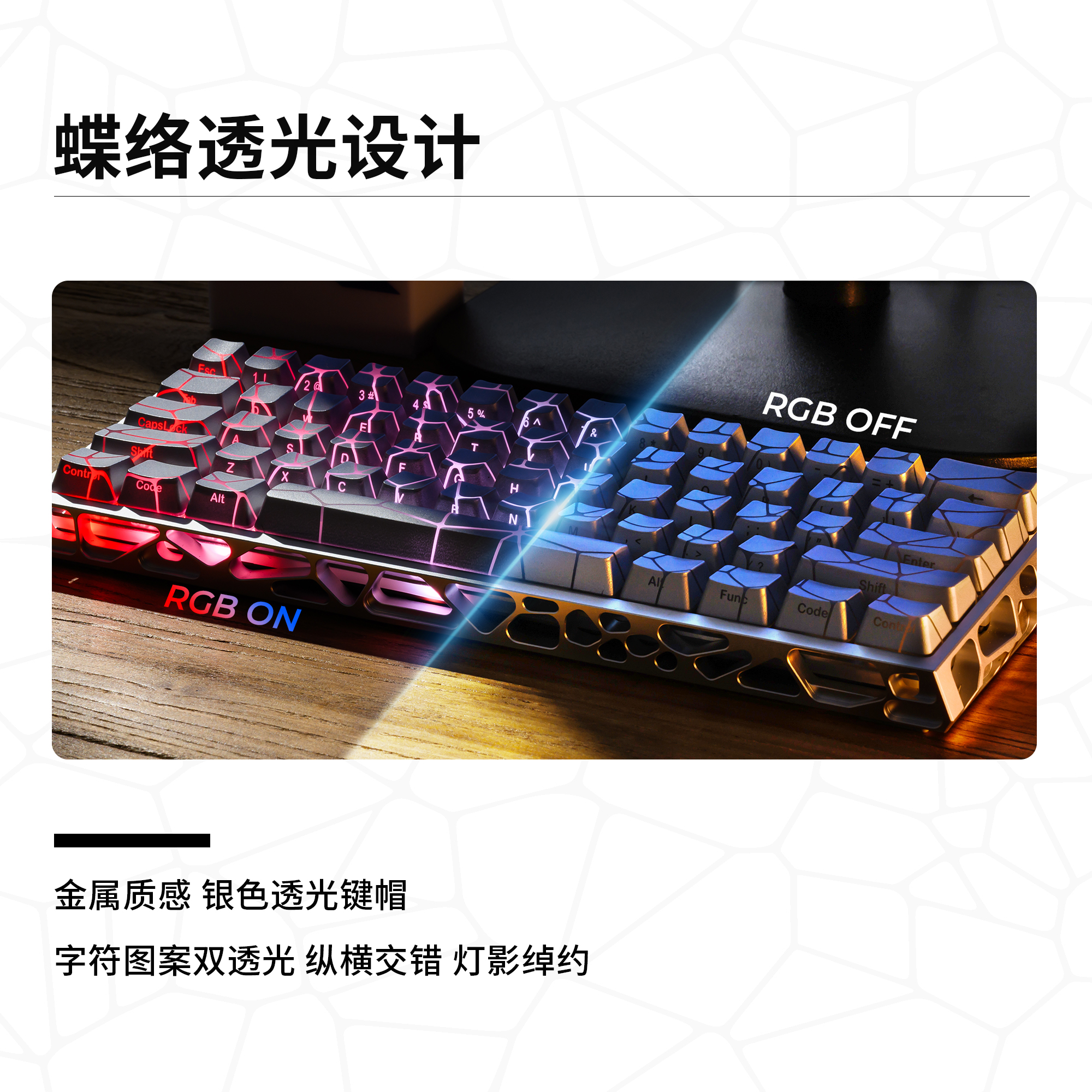 XVX蝶络键帽金属质感银色蝴蝶图案侧刻雾透IMD工艺磁轴机械键盘帽