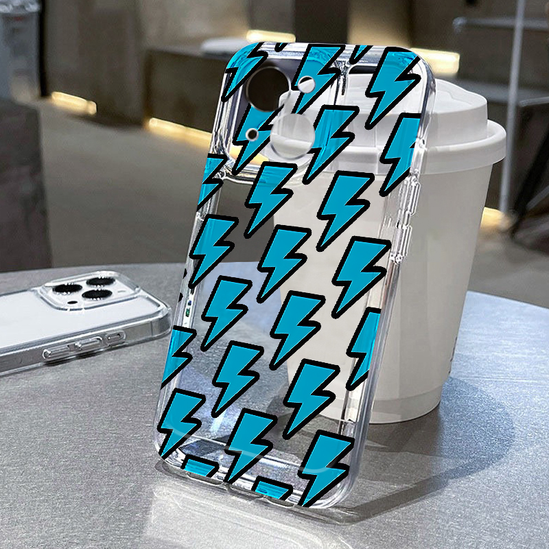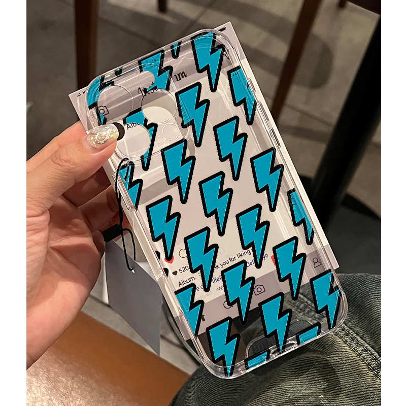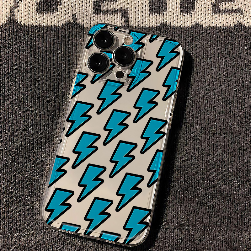 潮牌蓝白闪电苹果15手机壳14pro嘻哈简约iPhone13街头小众12透明全包硅胶软壳为mate60pro防摔小米13新款超薄