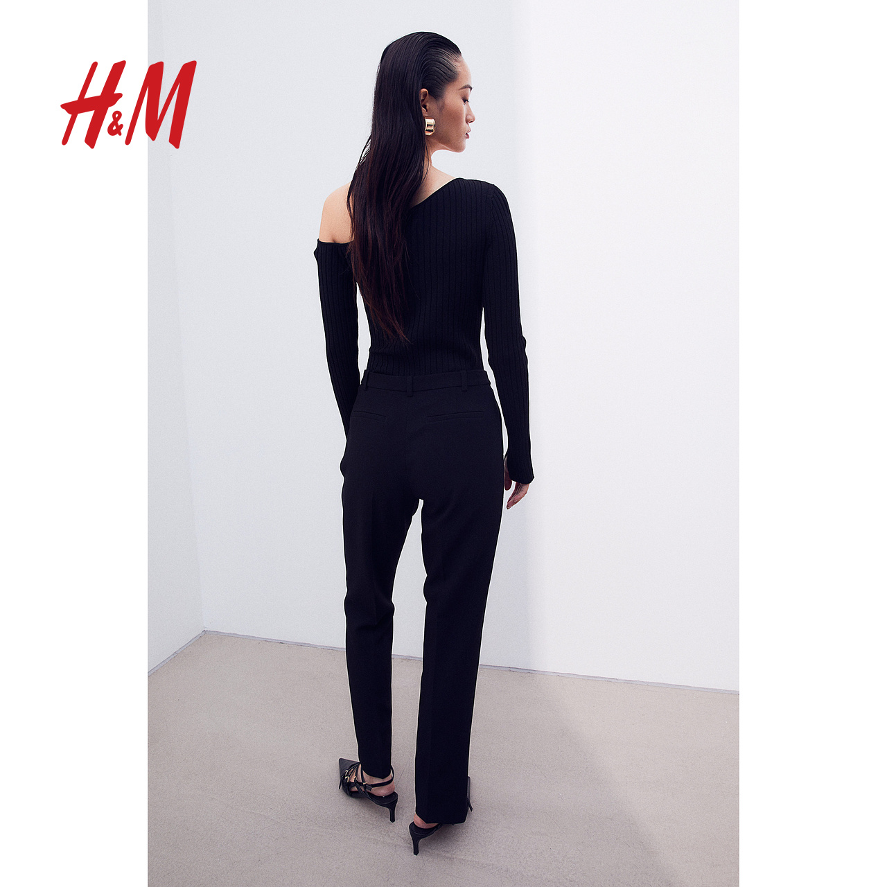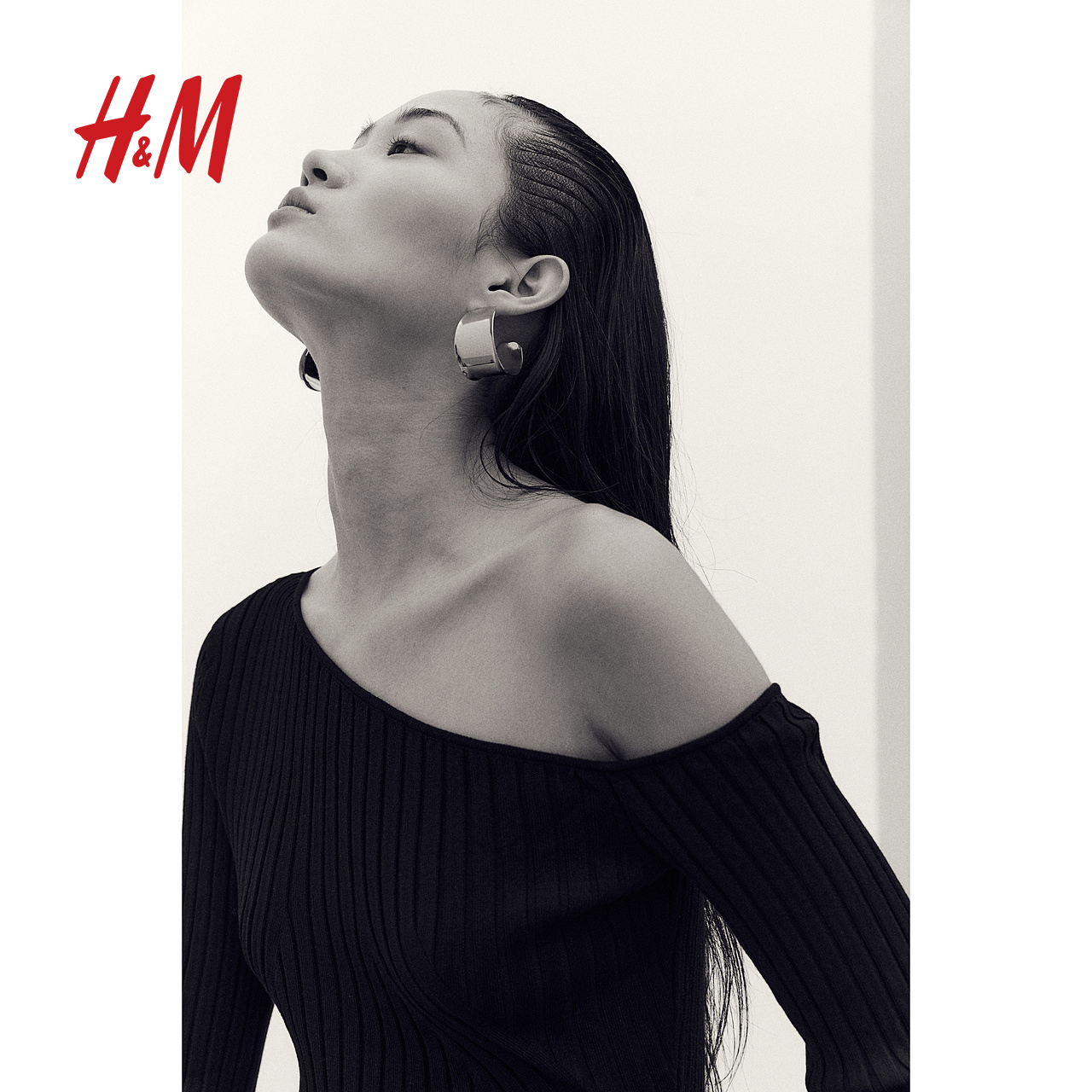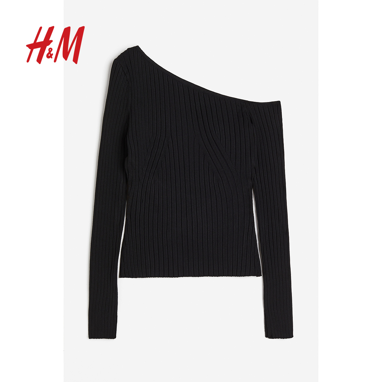 HM女装针织衫秋季气质优雅单肩不对称领口一字肩上衣1201262