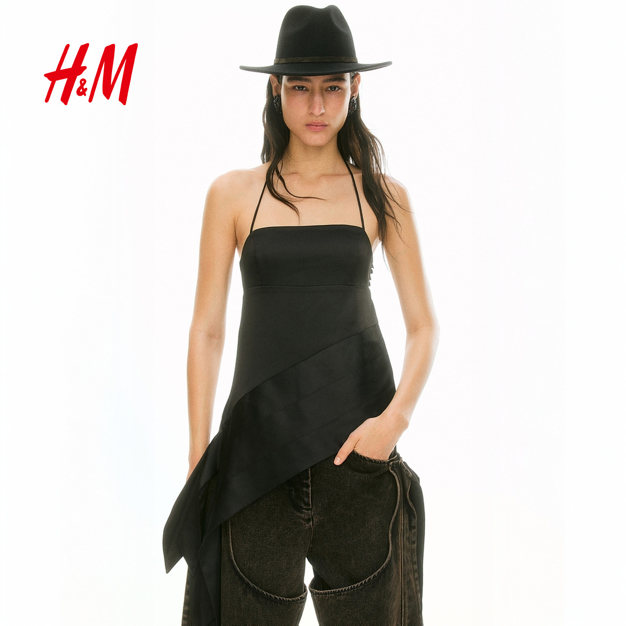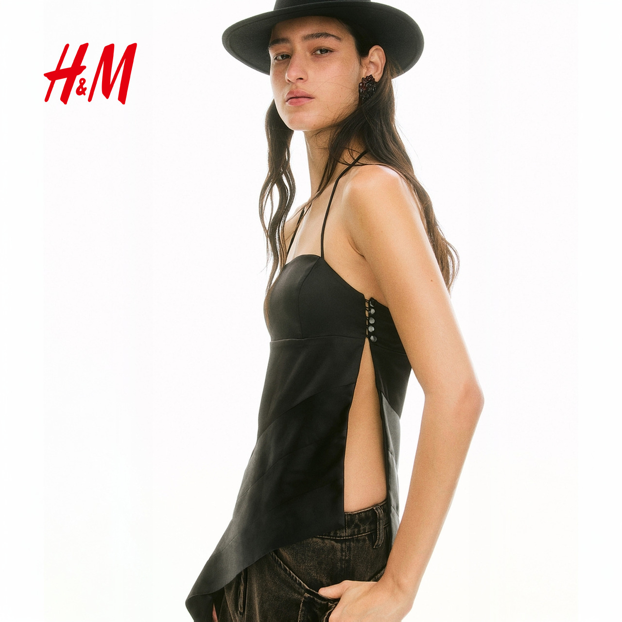 HM女装背心2025秋季新款不对称缎面露背修身吊带上衣1295455
