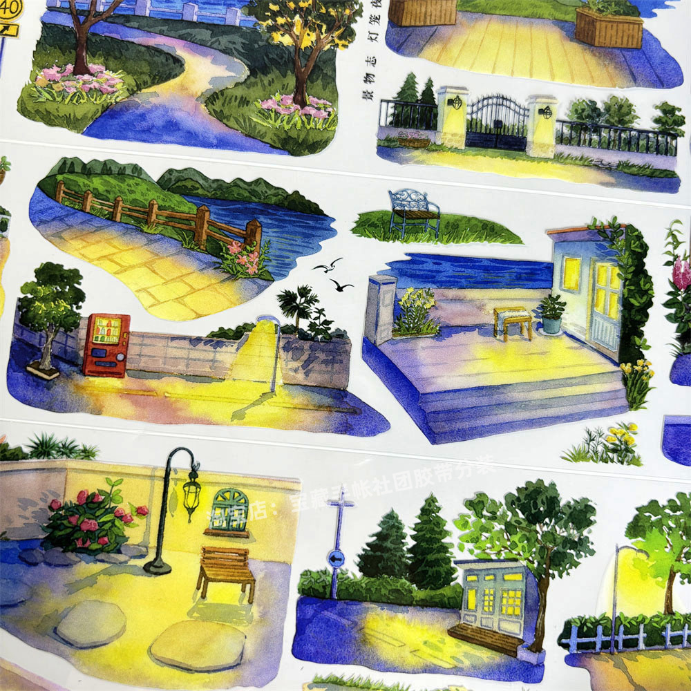 手帐分装胶带a601灯笼夜色景物志晚街道古风PET素材账手机壳贴纸