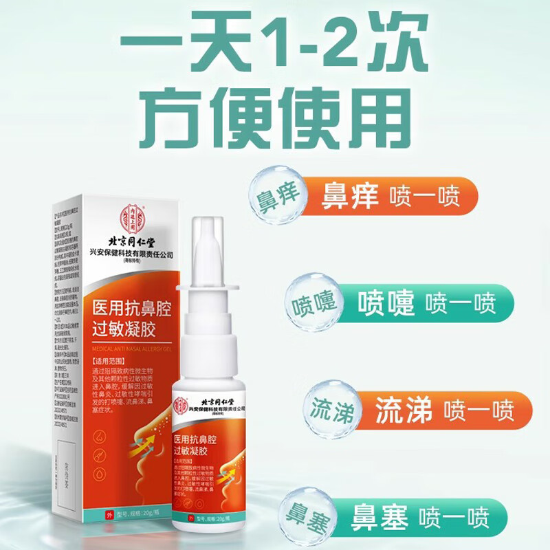 北京同仁堂医用抗鼻腔过敏凝胶过敏原阻隔剂儿童鼻窦炎痒塞通气用