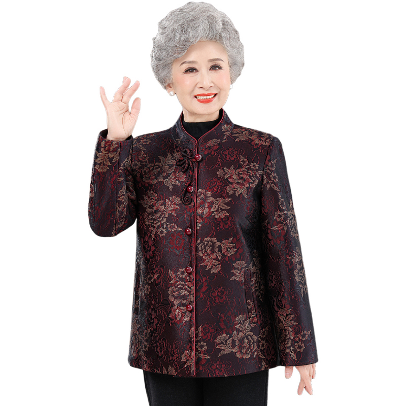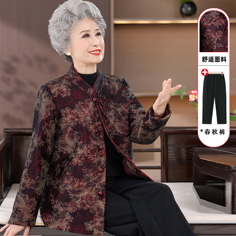 2025秋冬新款妈妈装新中式翻领长袖开衫中老年人外套气质奶奶上衣