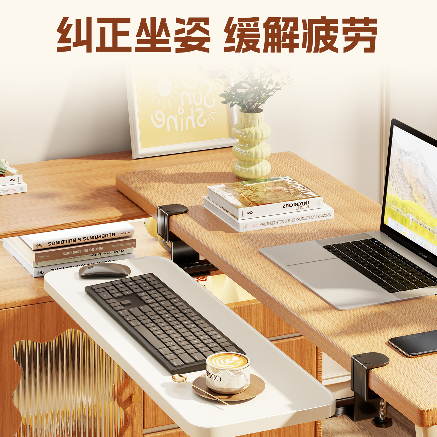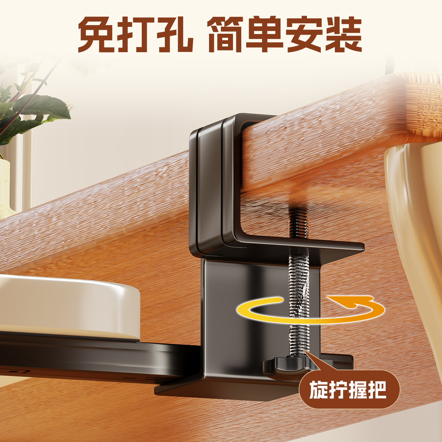 键盘托架办公室桌下免打孔抽屉架桌面滑轨夹笔记本鼠标多功能收纳置物神器家用宿舍台面延长板手臂支撑扩展台