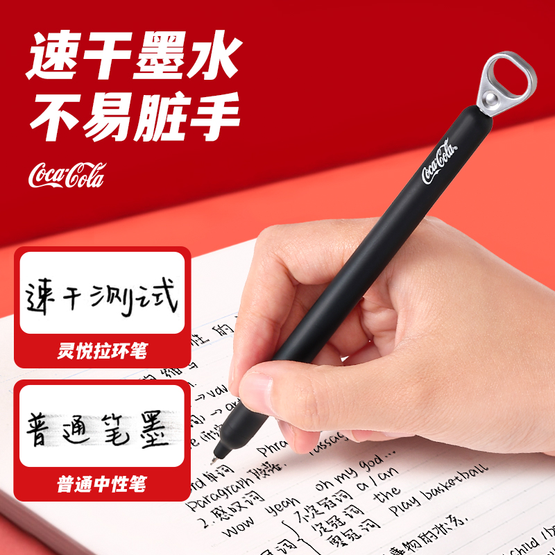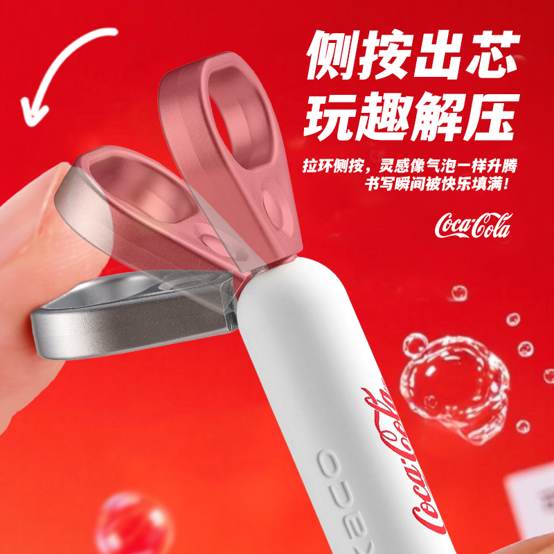 KACO可口可乐联名灵悦中性笔拉环创意高颜值速干按动0.5mm黑笔好物文具学生刷题办公签字笔大学生