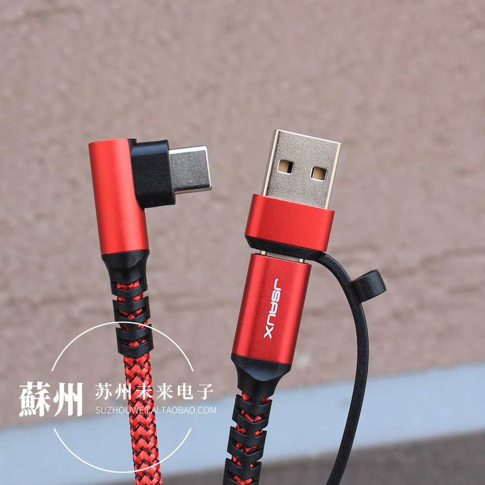 3米长弯头Type-C公对公数据线5A 100W PD快充线E-marker芯片 带USB转接头适用于苹果15 16安卓手机平板笔记本