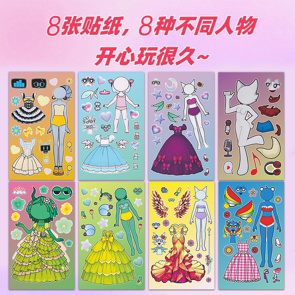 24张ins风节奏盒子公主裙换装贴手账儿童益智diy素材ABC不同装饰