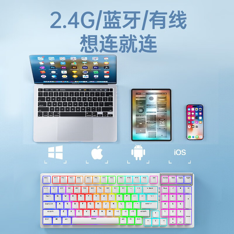 黑爵ak980机械键盘无线蓝牙三模客制化电竞游戏侧刻有线办公电脑