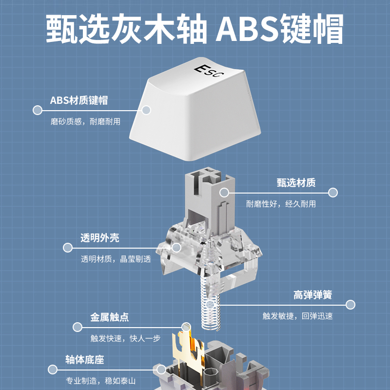 RKR87机械键盘有线电脑办公茶青轴电竞游戏银轴线性轴热插拔白色