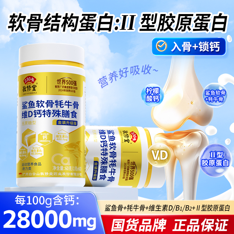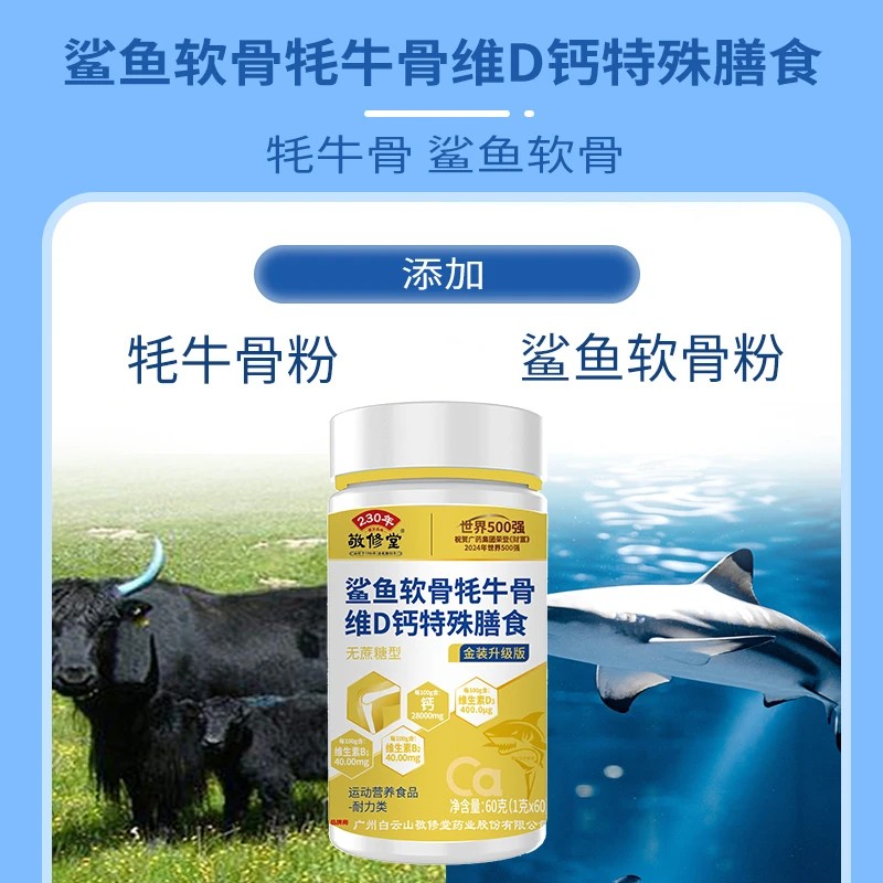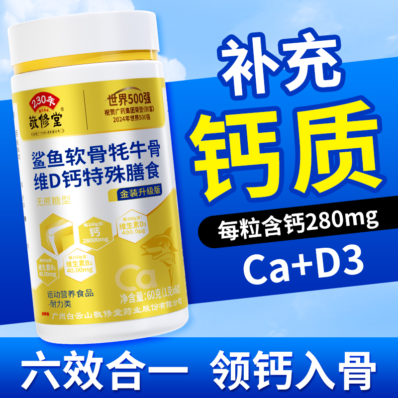 广州白云山敬修堂鲨鱼软骨牦牛骨维生素VD钙片中老年人骨质疏松