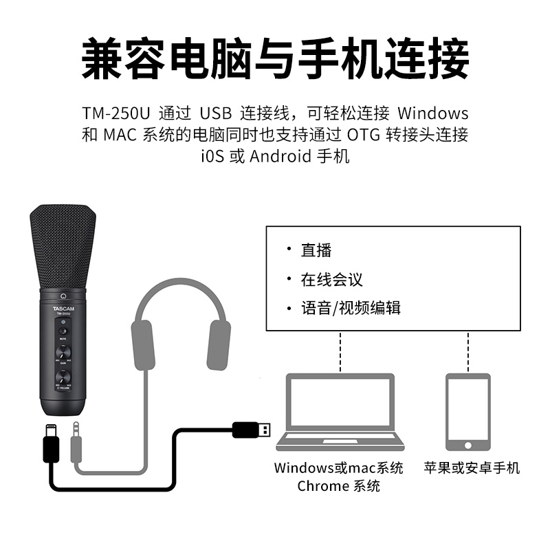 TASCAM达斯冠TM系列话筒心形动圈大振膜麦克风直播K歌配音播客