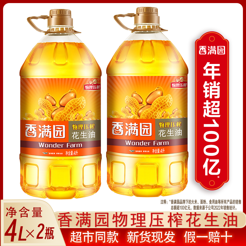 香满园物理压榨一级花生油4L*1瓶新鲜日期纯正浓香家用烹饪食用油