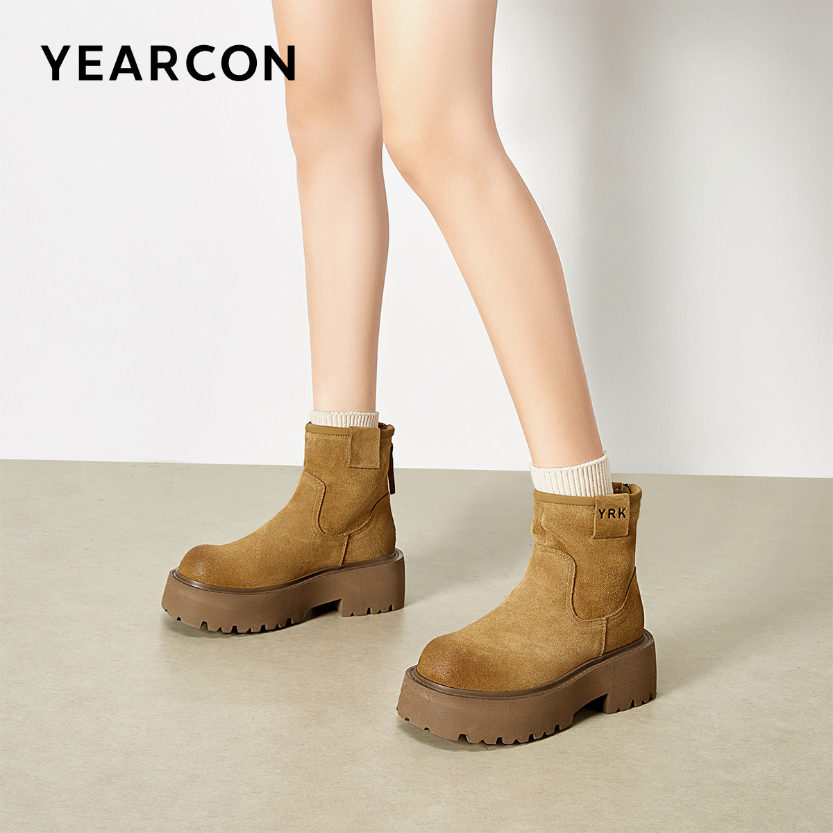 意尔康女鞋秋冬休闲短靴粗跟单靴气质英伦显瘦复古及踝靴女士厚底